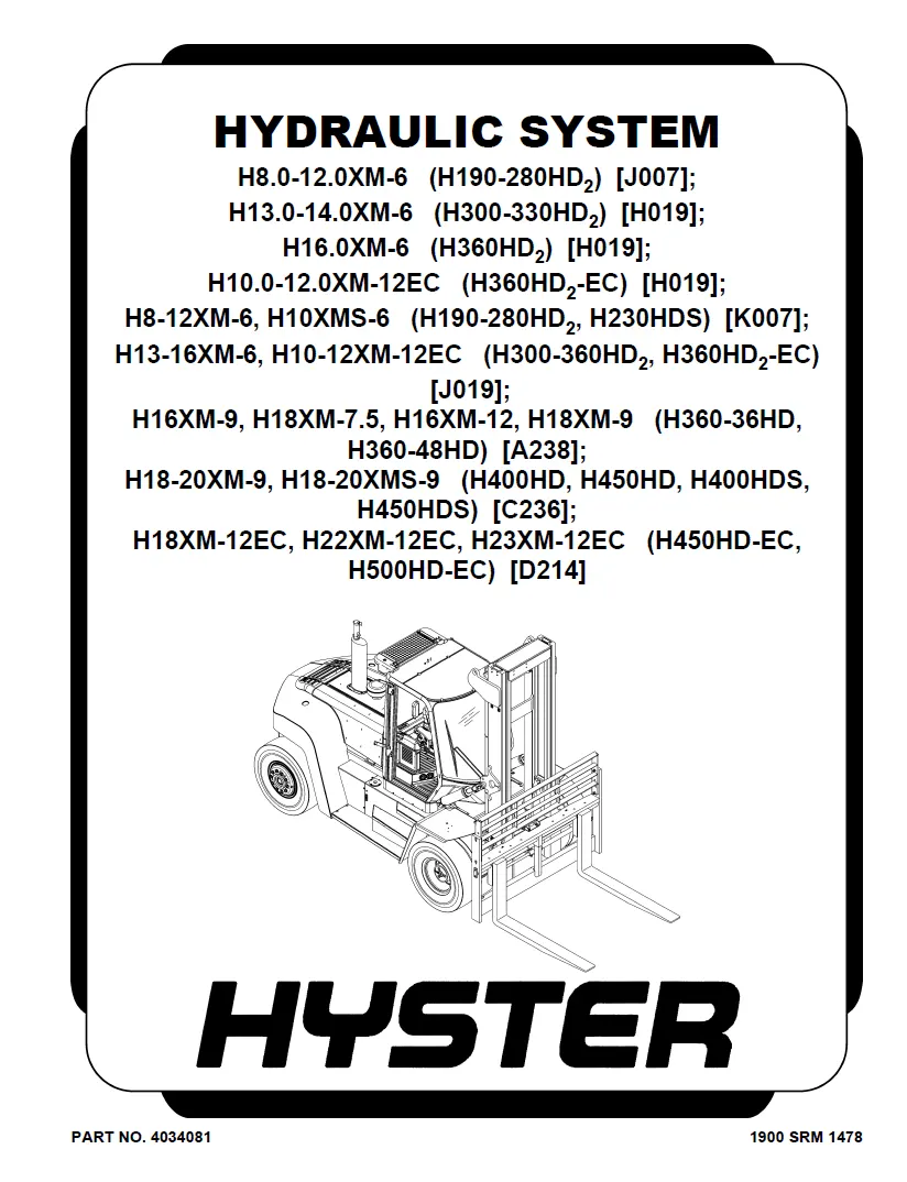 The Hyster H16.00XM-9 [H360-36HD] (A238) Manual PDF is a practical digital resource for technicians and maintenance teams working with heavy-duty forklift equipment. Built for high-capacity applications, this model requires accurate service information, and this manual helps simplify maintenance and repair processes.