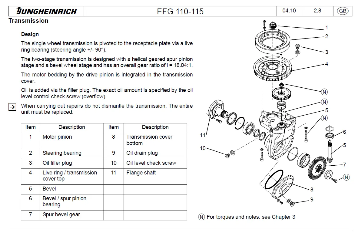 Download JUNGHEINRICH EFG113 forklift workshop and repair manual. View operation and maintenance book on your tablet or your smartphone. You may also download parts catalog and user manual as pdf. Take a look at the hydraulic system scheme, electrical wiring diagram, circuit schematic and fault-error codes. And this way you troubleshoot in your workshop.