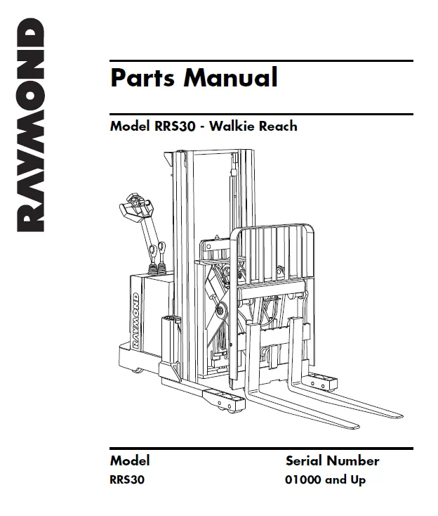 Download the full Raymond RRS30 walkie stacker manual in convenient PDF format. Designed for service technicians, mechanics, and operations personnel, this manual contains detailed service content including the official parts catalog, complete electrical diagrams, hydraulic flow schematics, and a list of system fault codes.