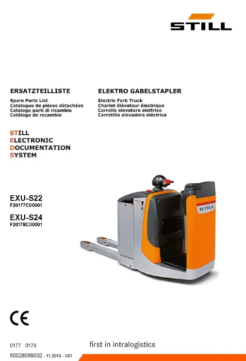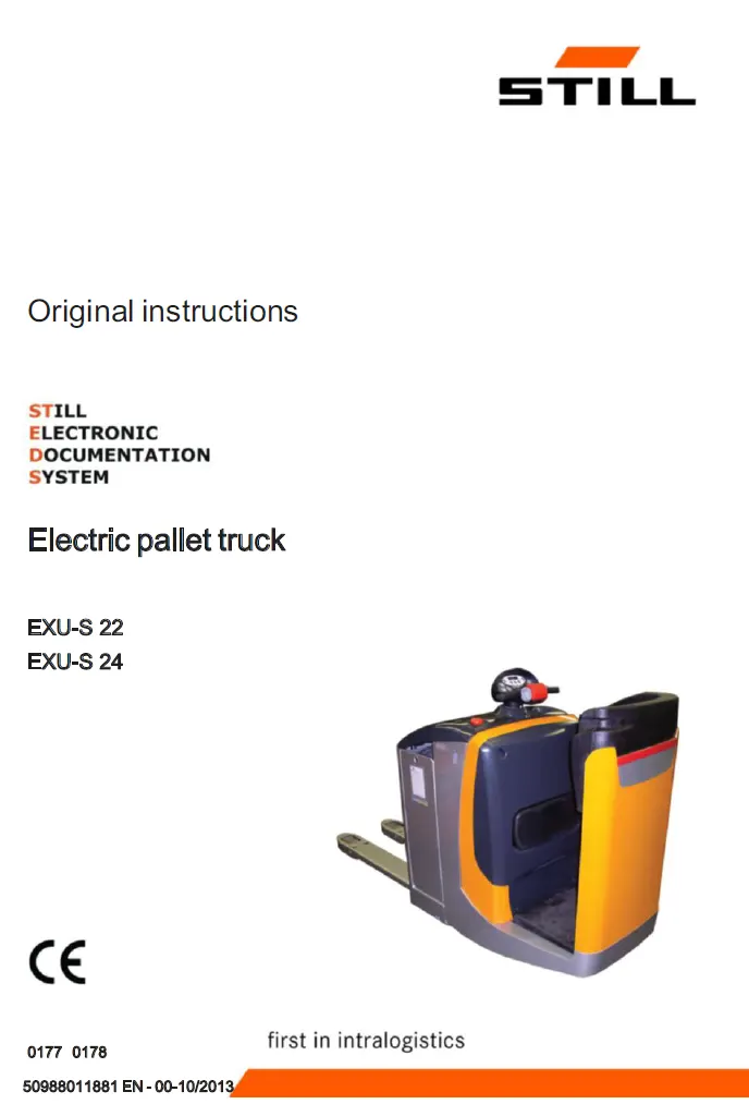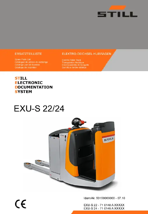 The Still EXU-S22 (0148) Manual is a detailed technical guide created for forklift technicians, maintenance teams, and warehouse professionals working with this electric low-lift pallet truck. Built for demanding logistics operations, the EXU-S22 requires proper servicing and correct usage to maintain performance, safety, and reliability. This manual provides the essential information needed to support those tasks.