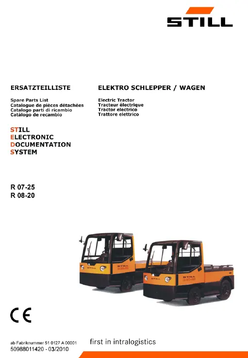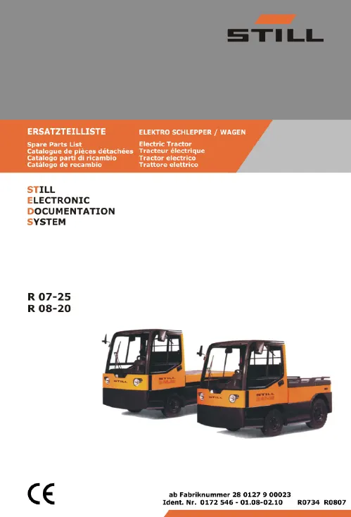 This manual includes detailed maintenance procedures, service instructions, and troubleshooting guidance specifically for the Still R07-25. Whether you are performing routine inspections, scheduled servicing, or fault diagnosis, this guide helps simplify the process with a clear and organized structure.