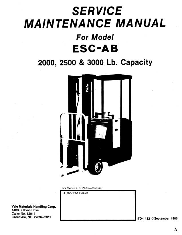The Yale ESC030AB (A824) Manual is the complete digital guide for technicians, operators, and owners who need detailed service and parts information for this dependable electric forklift model. Whether you’re performing regular maintenance, diagnosing issues, or replacing components, this manual provides all the factory-level details you need in one convenient document.