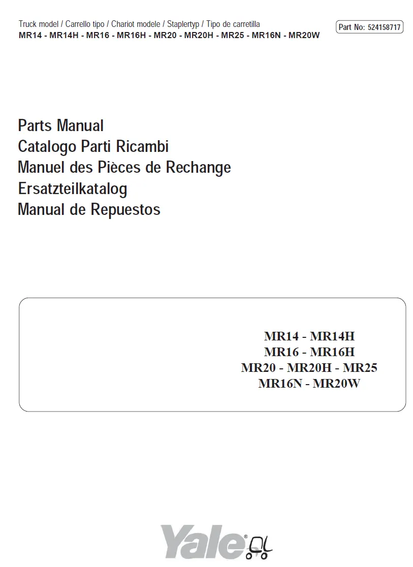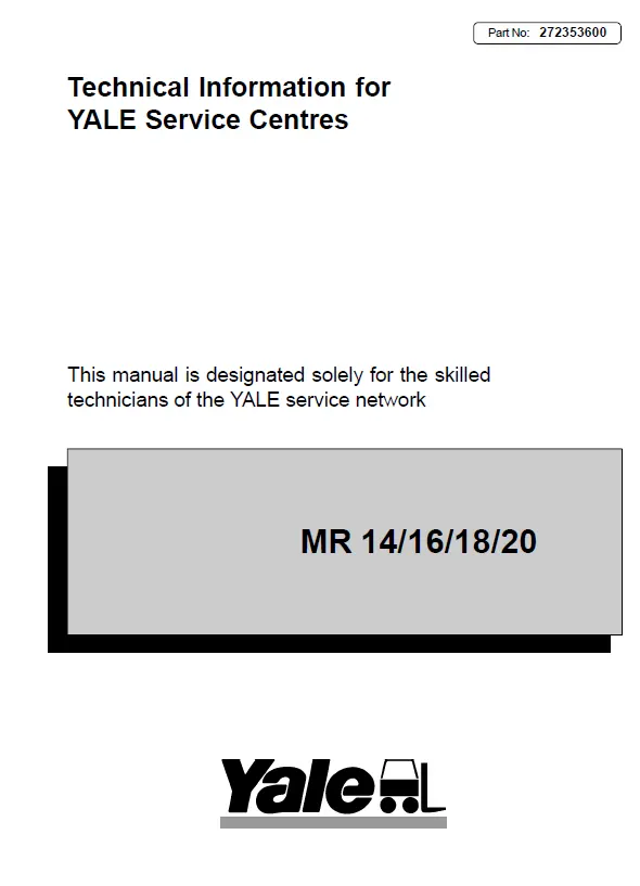 Access the comprehensive PDF manual for the Yale MR14 (C849) reach truck. This digital guide is designed for easy navigation across any device, including mobile phones, tablets, and desktop PCs. It includes everything you need for proper maintenance, operation, and troubleshooting of the MR14 reach truck. Inside the manual, you’ll find detailed electrical diagrams, a complete parts catalog, hydraulic schematics, and diagnostic error codes that are essential for technicians and maintenance teams. Whether you’re performing scheduled servicing or in-depth repair work, this manual will save you time and money by helping you identify parts and system functions efficiently. Clear visuals and manufacturer-approved procedures make this PDF an indispensable reference. Download once and keep it accessible offline for field use or shop repairs. This is the go-to documentation for forklift owners, mechanics, and service professionals handling Yale MR14 models. Avoid guesswork—get the correct data straight from the source in a portable, printable format.