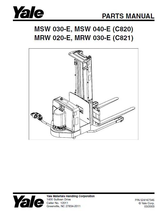 Downloading the Yale MSW040E (C820) Manual gives you full access to factory-approved information, helping extend equipment life and maintain peak performance. Perfect for workshop use, online referencing, or as part of your digital service library, this PDF is a must-have tool for professionals working with Yale equipment.