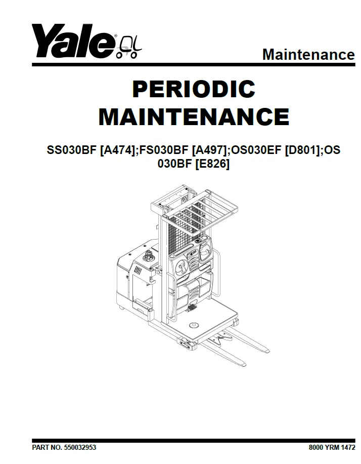 The Yale OS030BF order picker is a dependable machine, but regular servicing is the key to maximizing its uptime. This manual supports that goal by offering precise instructions directly from the manufacturer. Whether you are performing routine inspections, replacing wear components, or diagnosing an unexpected malfunction, the manual ensures you follow the correct procedures.
